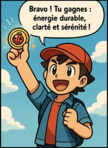 La victoire se fête avec un badge spécial : la coccinelle du Céto Club, symbole d’équilibre et de paix retrouvée. Grâce à cette stratégie, le dresseur gagne ce qui compte vraiment : énergie durable, réparation du corps, clarté et sérénité.