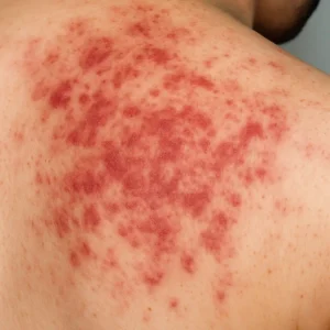 Le nom savant, pour briller en société, c’est prurigo pigmentosa. Une sorte d’eczéma inflammatoire, souvent localisé sur le torse, le cou ou le dos, qui grattouille, qui rougit, et qui parfois fait des petits dessins sympas sur la peau (des ronds, des lignes… un peu comme si ton foie s’essayait à l’art abstrait).